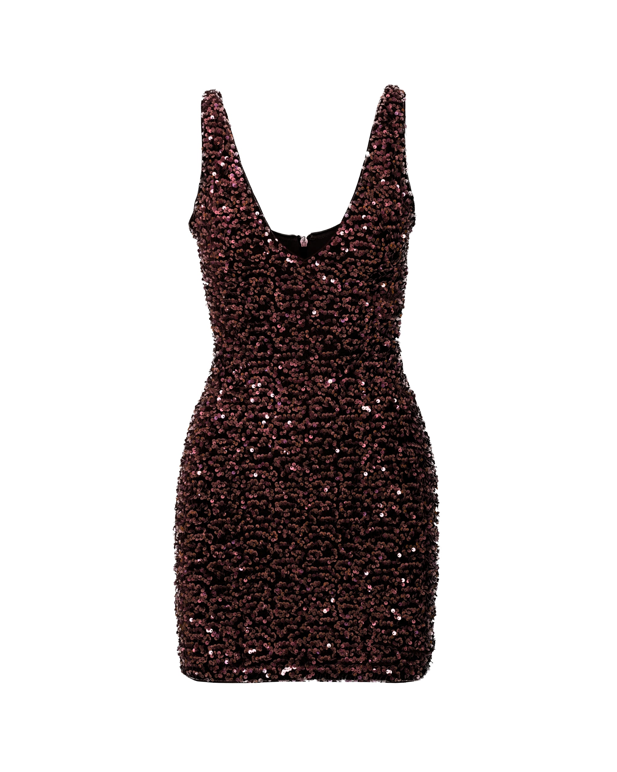KALI Keyhole Sequin Maxi Dress in BRONZITE