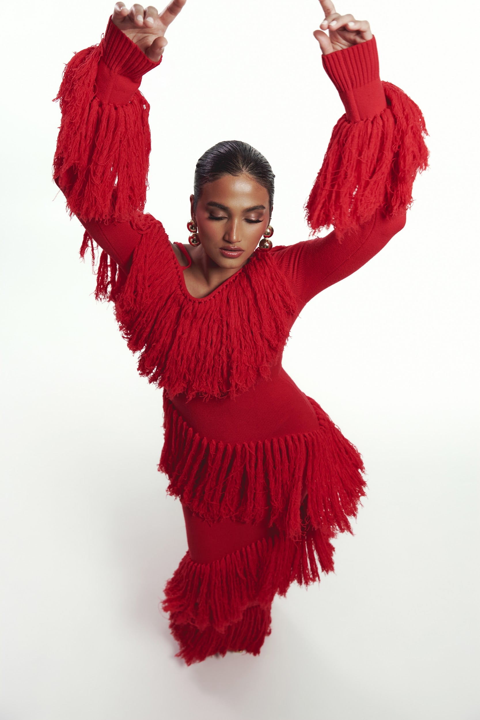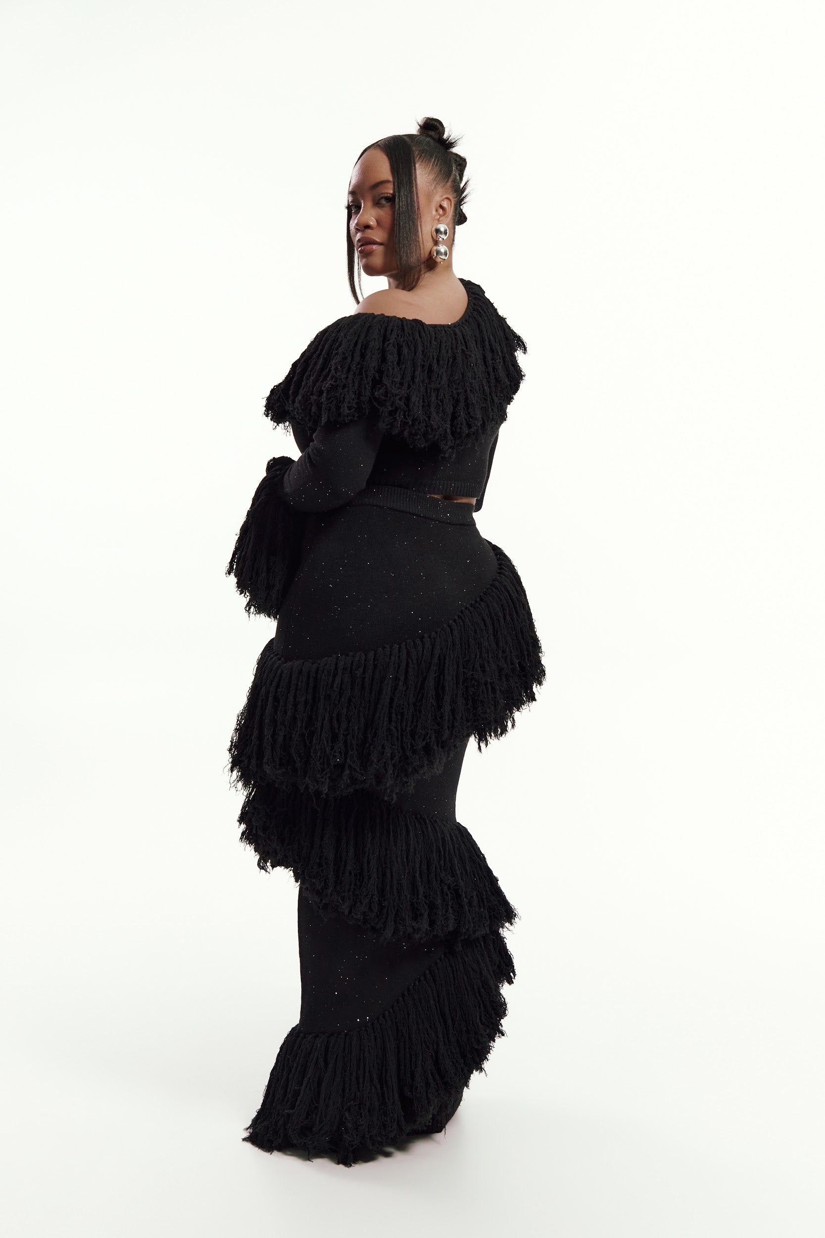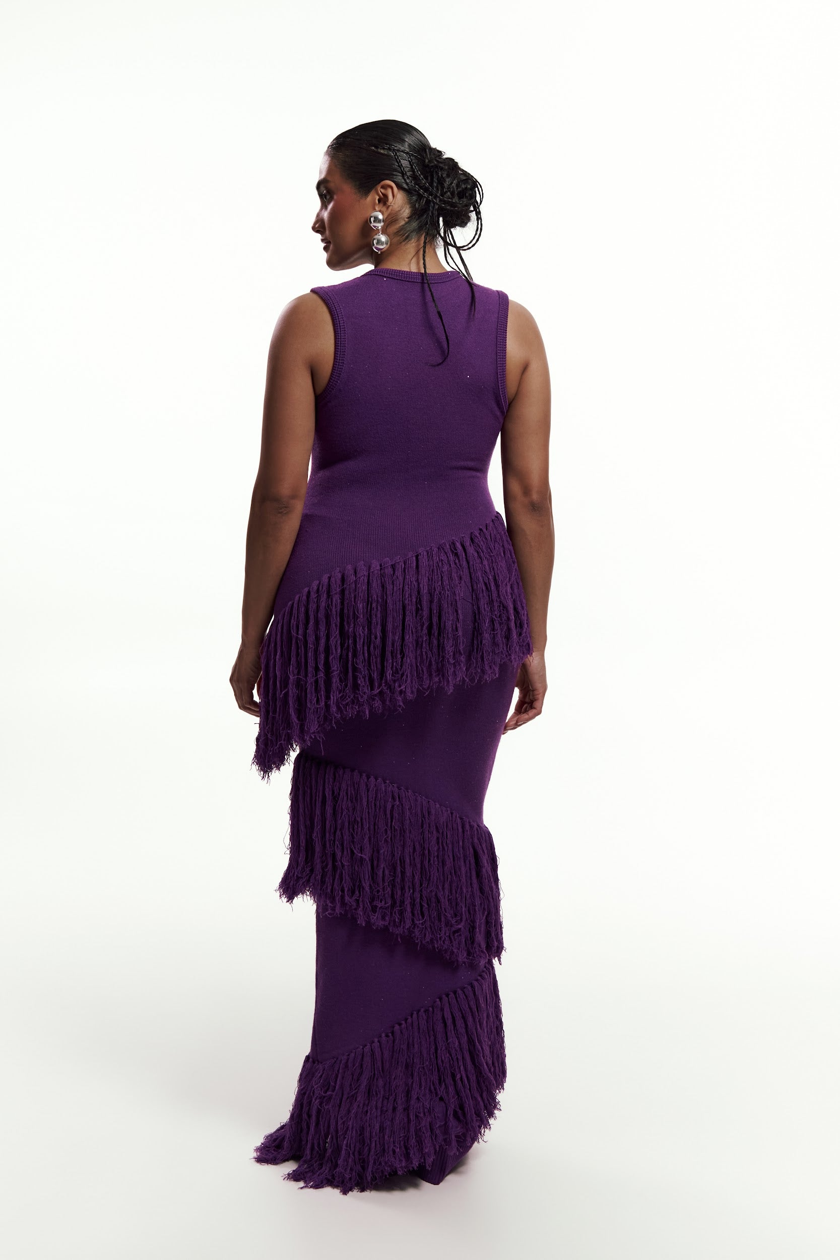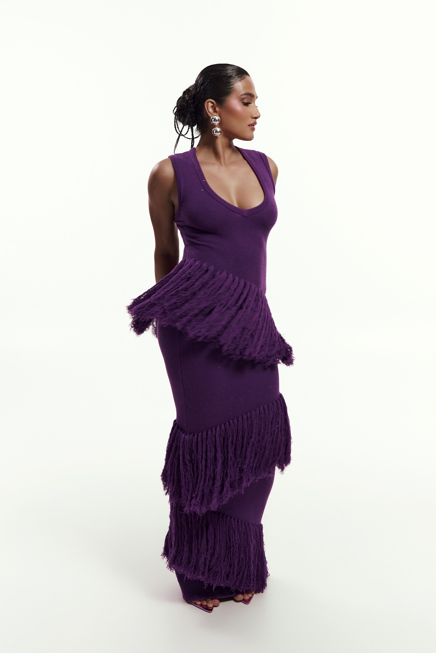 UYAI Sequin Fringe Maxi Dress in PURPLE