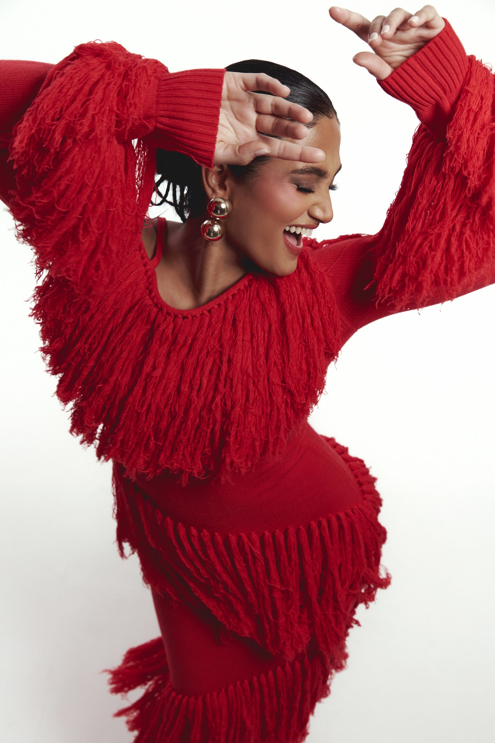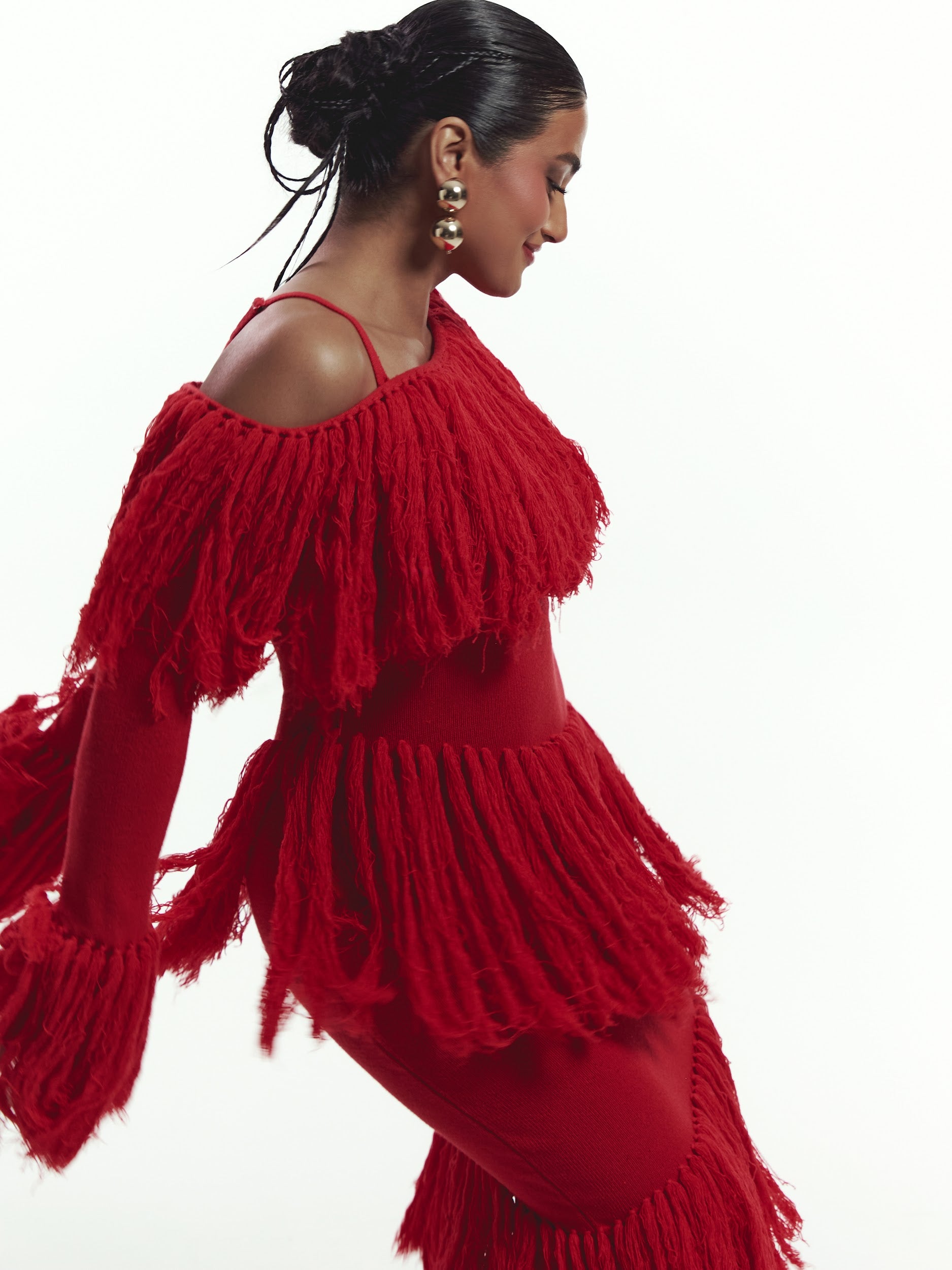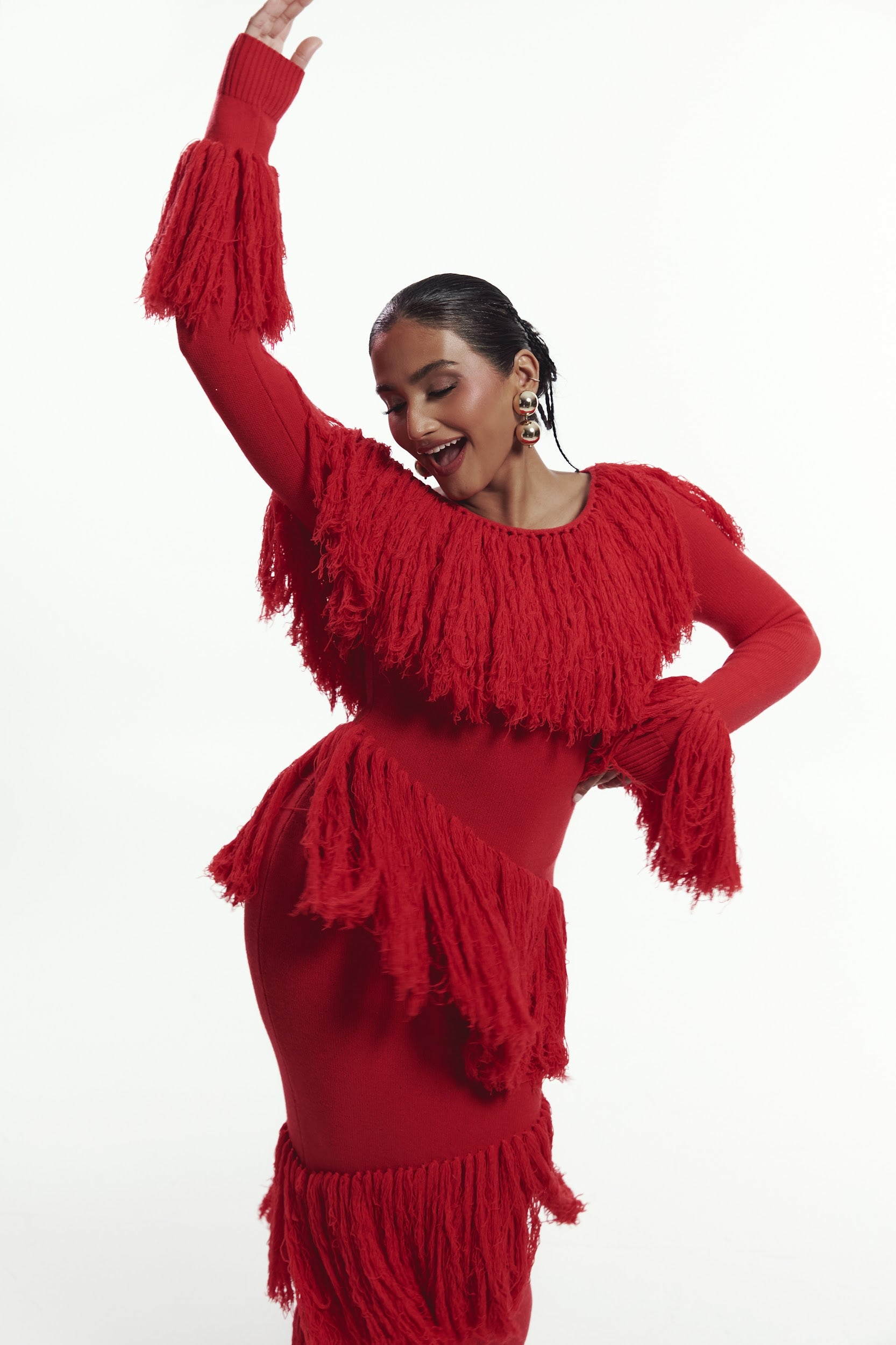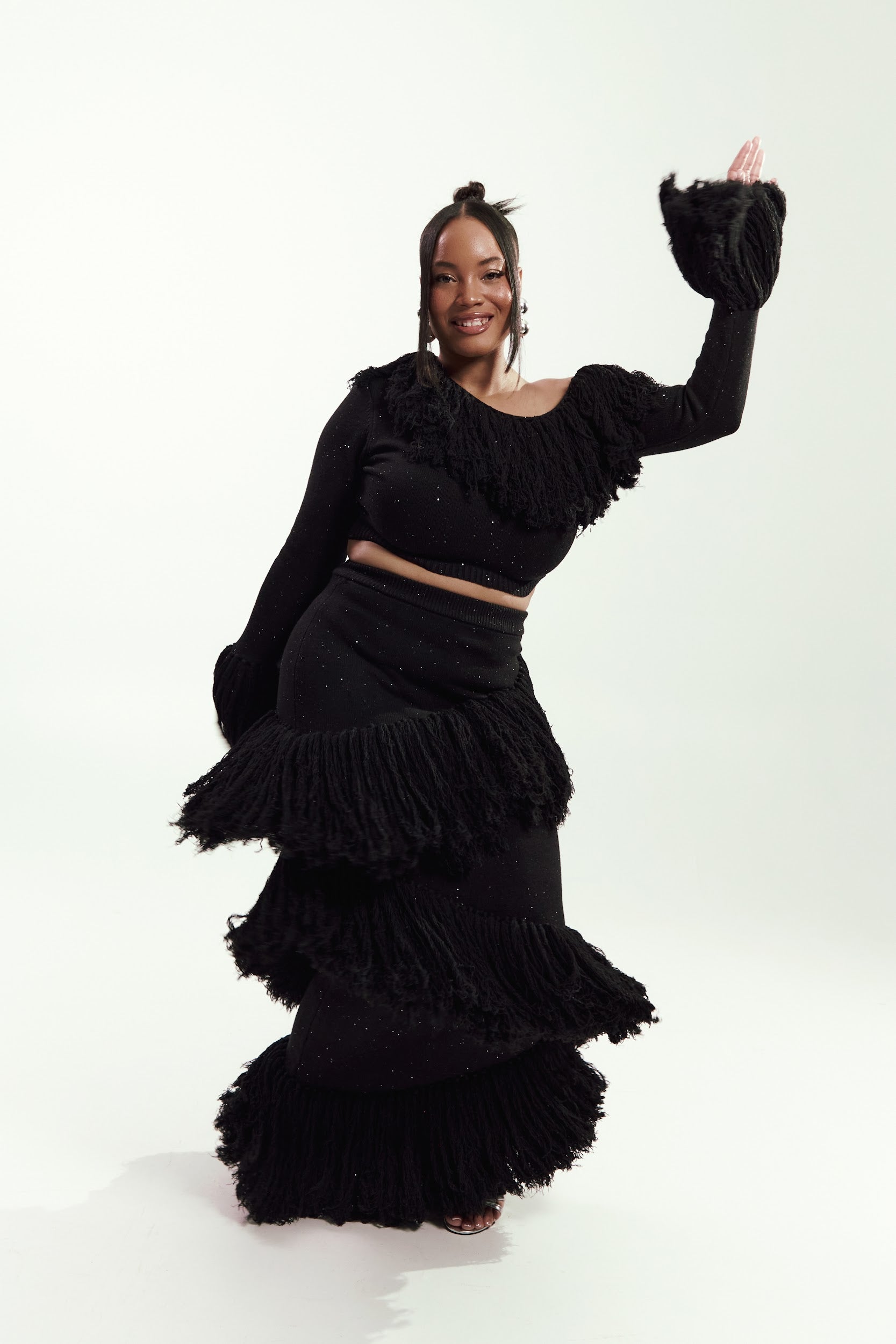 UYAI Sequin Fringe Maxi Dress in PURPLE