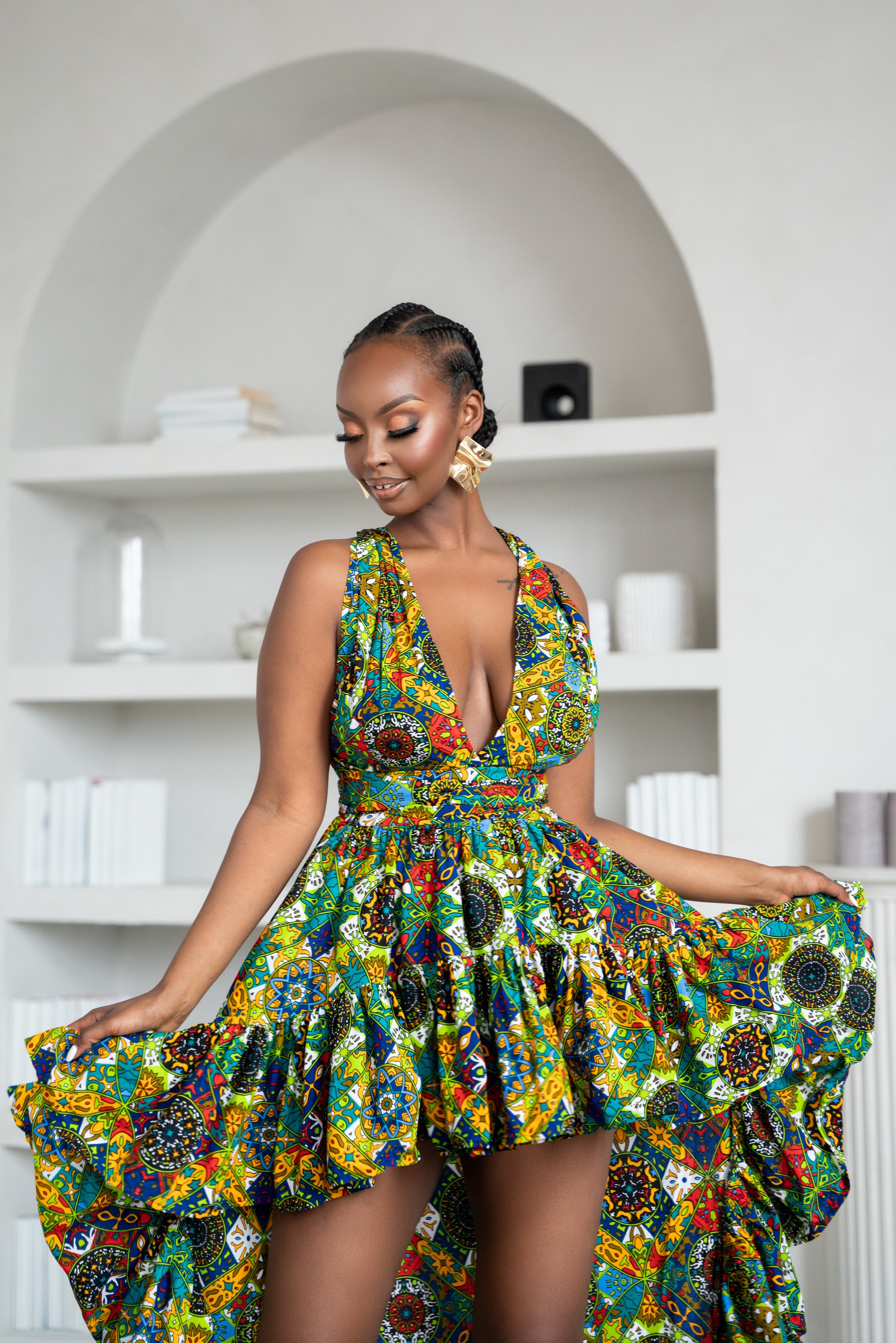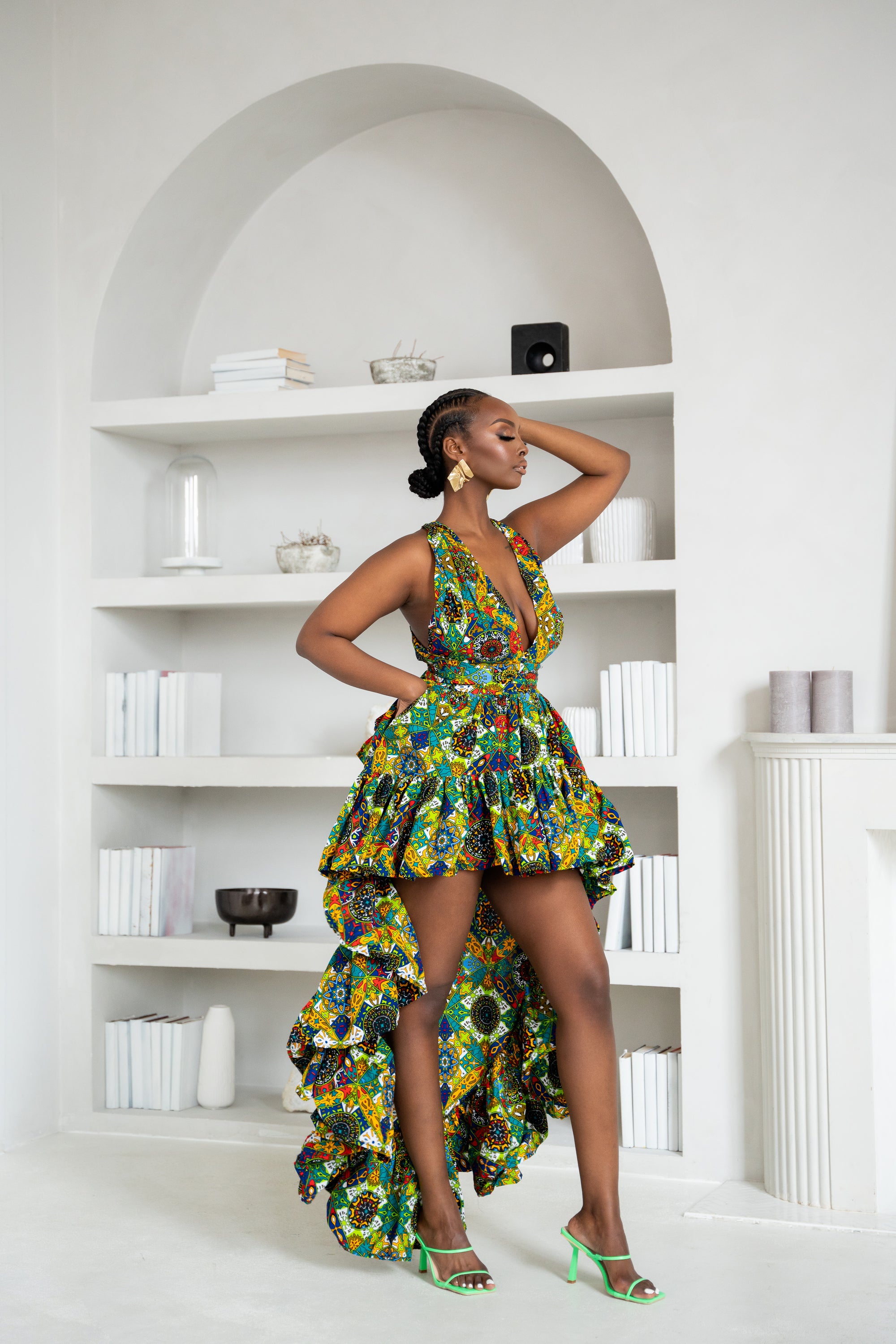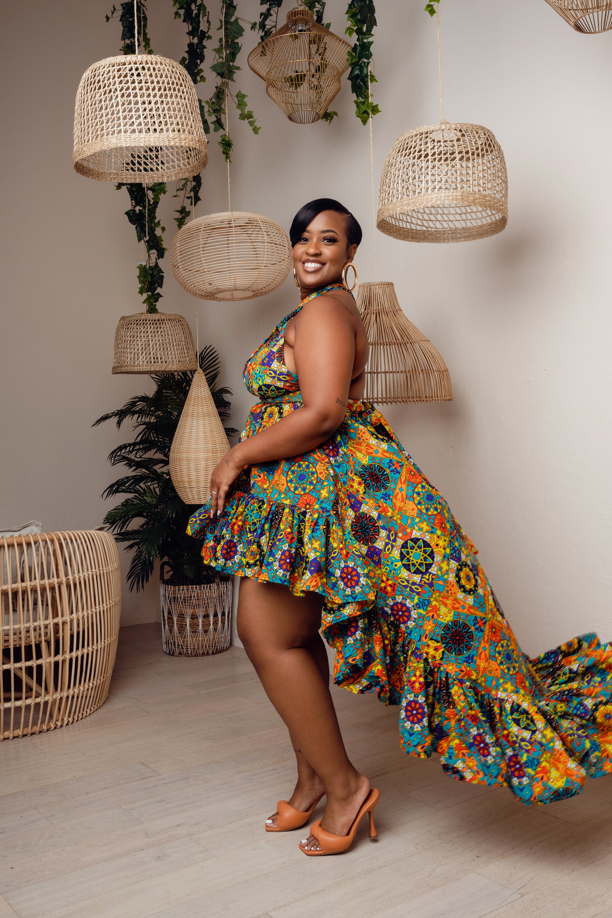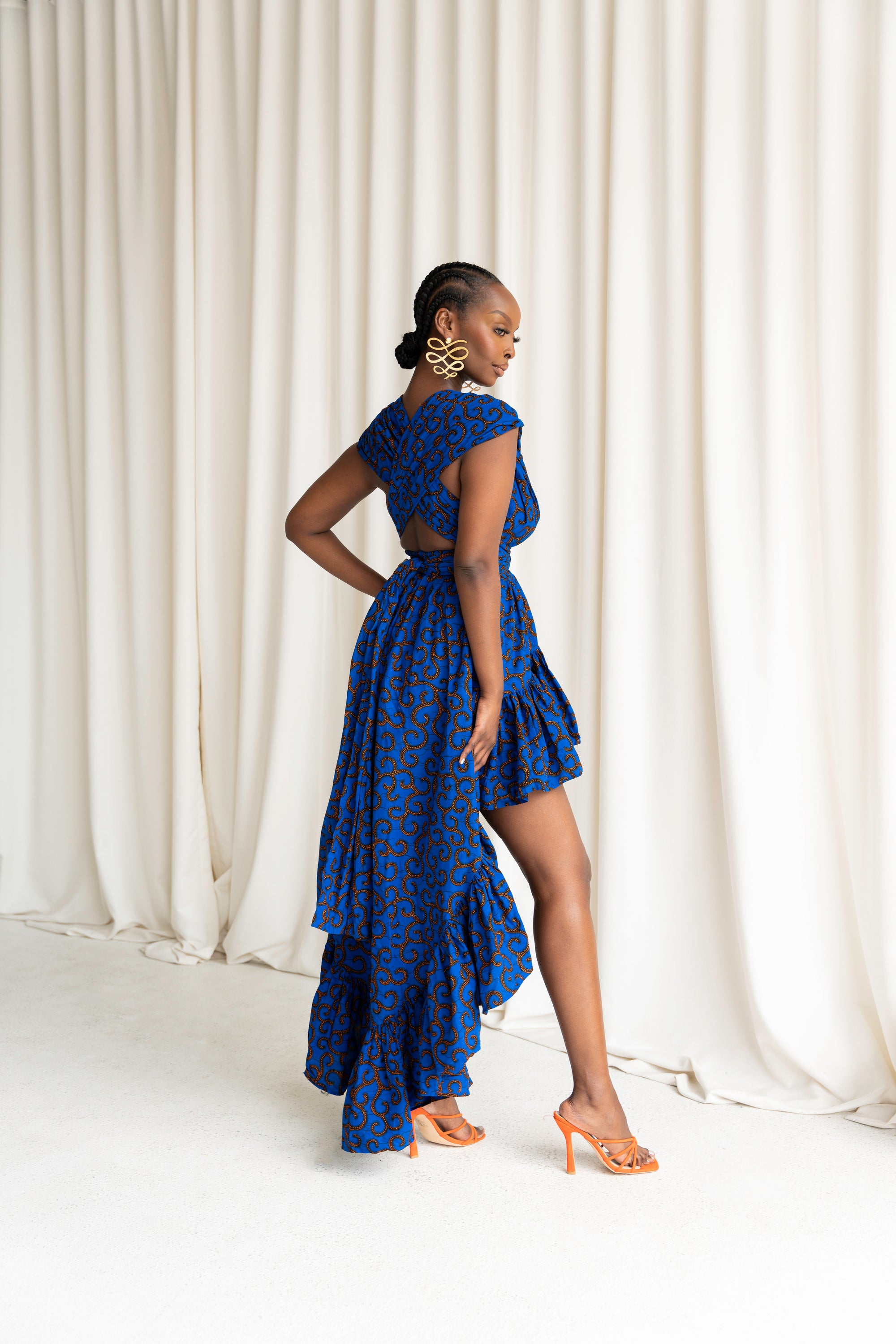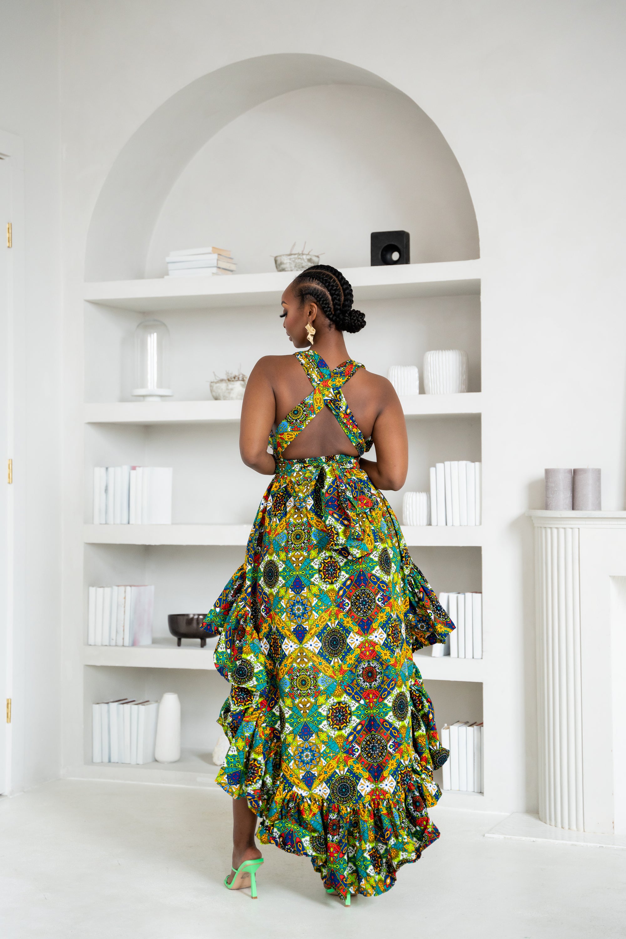 DORA Off shoulder Ruffle African Print Maxi Dress