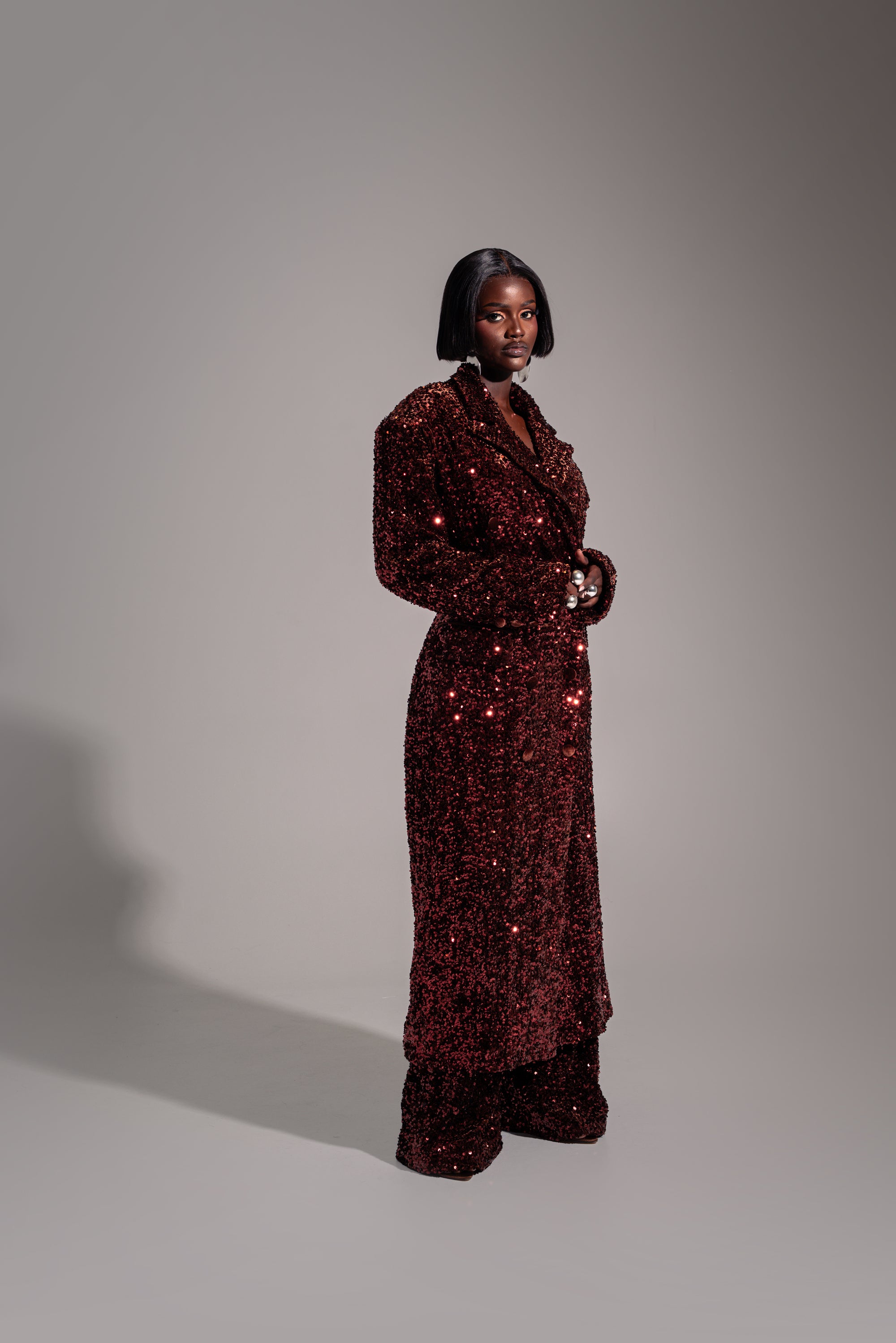 KALI Keyhole Sequin Maxi Dress in BRONZITE